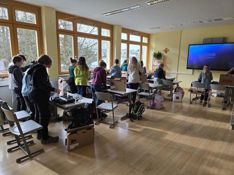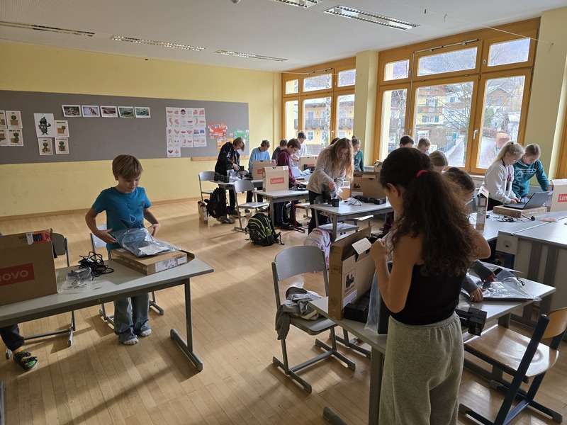 In der 12. Schulwoche wurden 55 Lenovo Laptops an die Schülerinnen und Schüler der 1. Klassen ausgegeben.